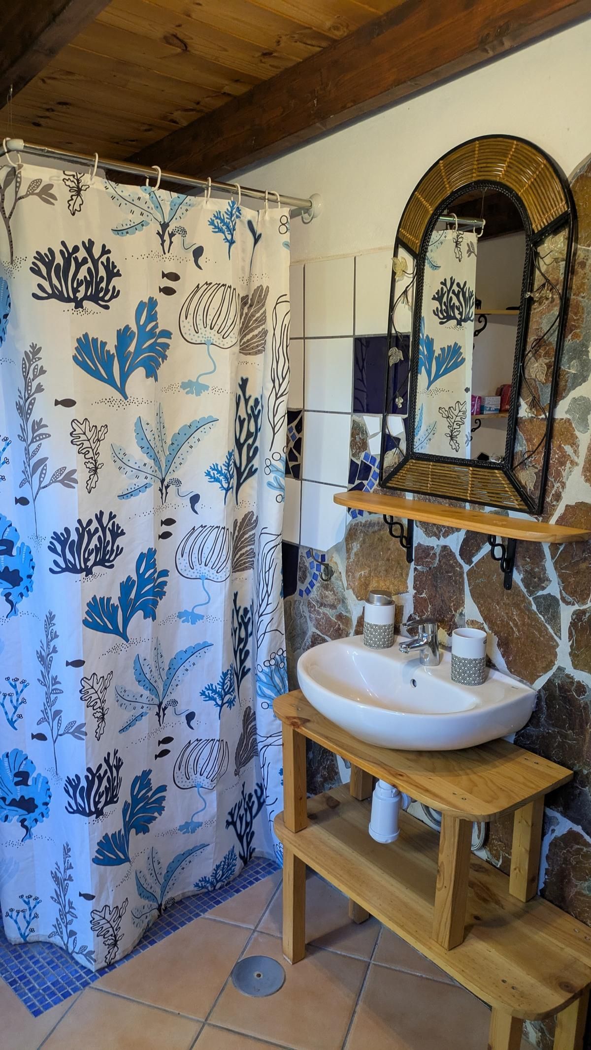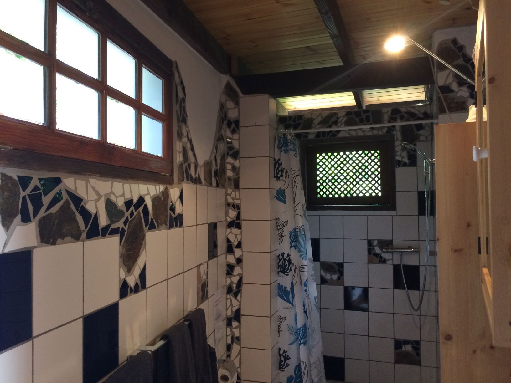 - 1 Außendusche ganz aus Natursteinen, überdacht