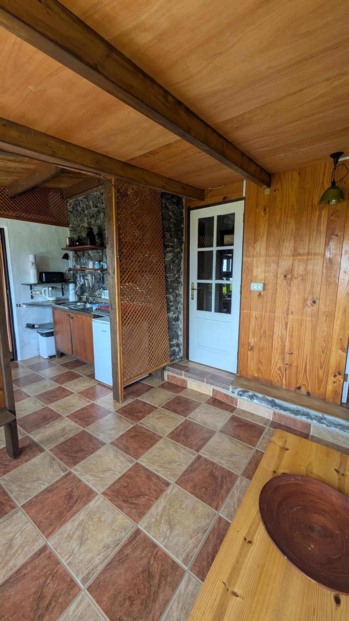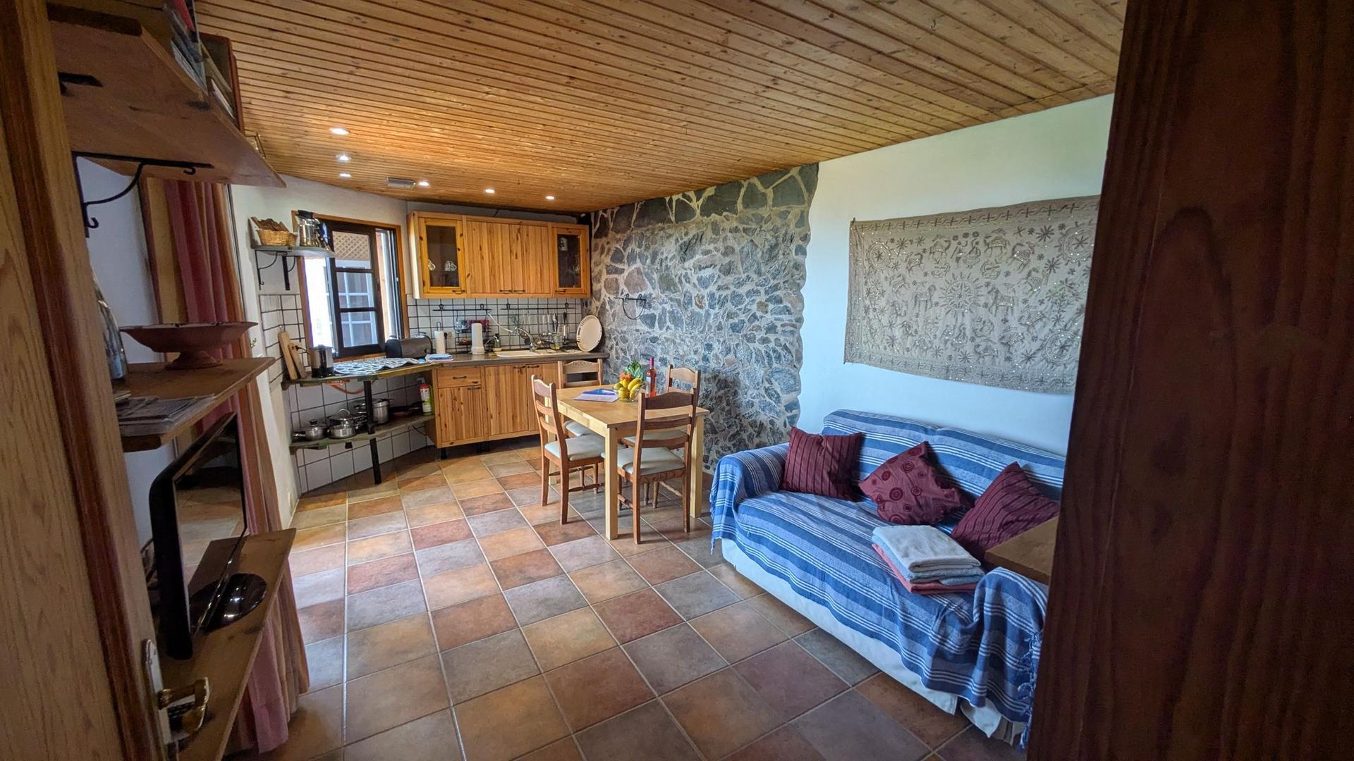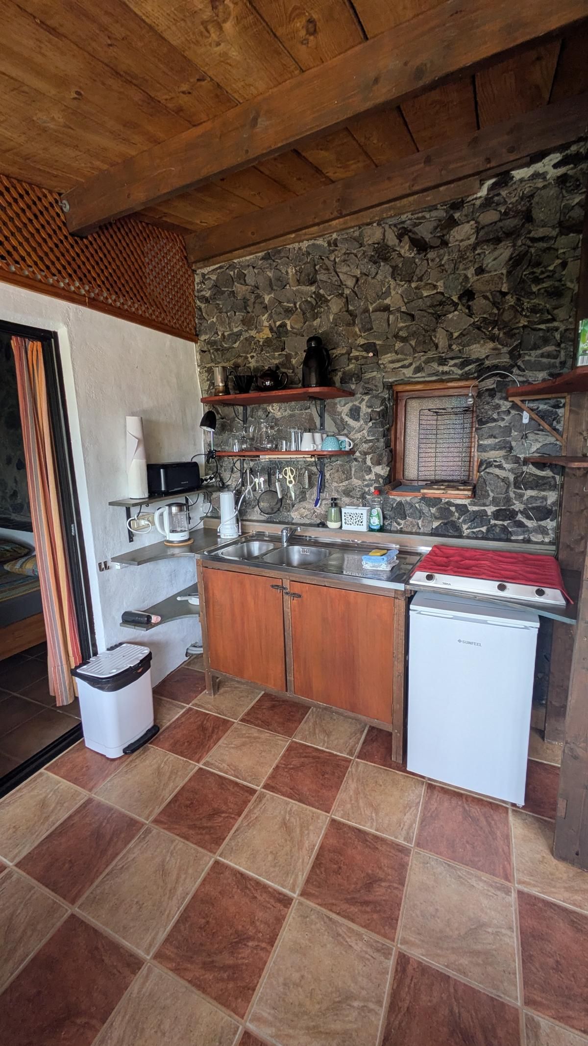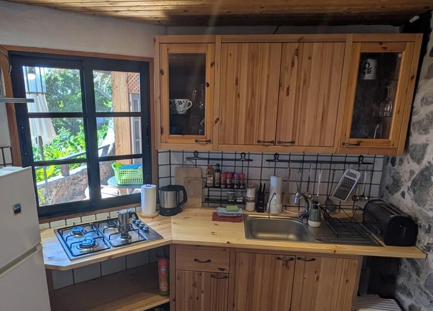 - 1 Ess/Wohn/Küche mit Gasherd, Kühlschrank, Toaster, Wasserkocher, span. Cafeteria, Isolierkanne mit Kaffeefilter, ausreichend Geschirr, Spülmittel u. -schwämmchen, Wasserfilter (kein Trinkwasserschleppen)