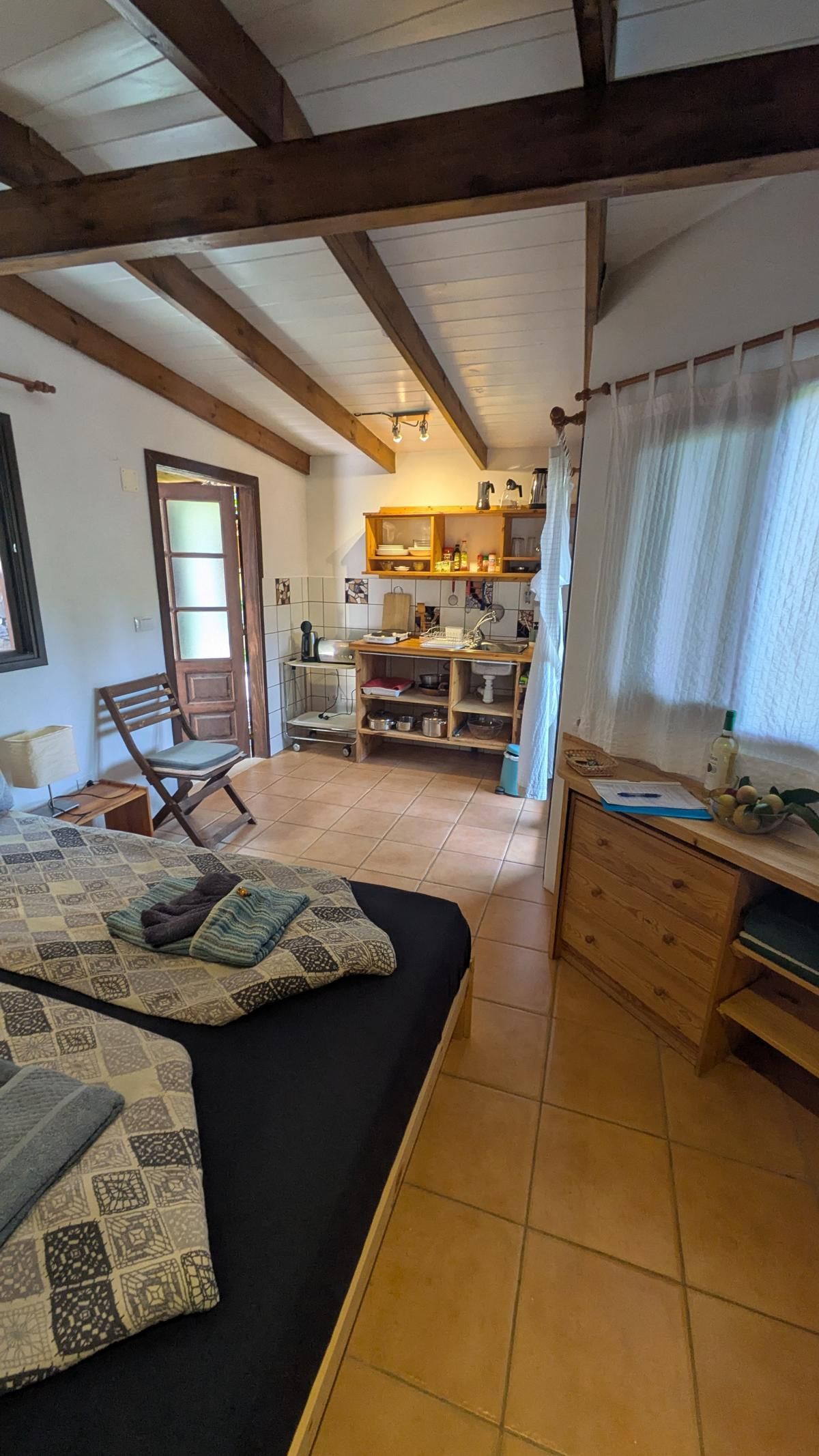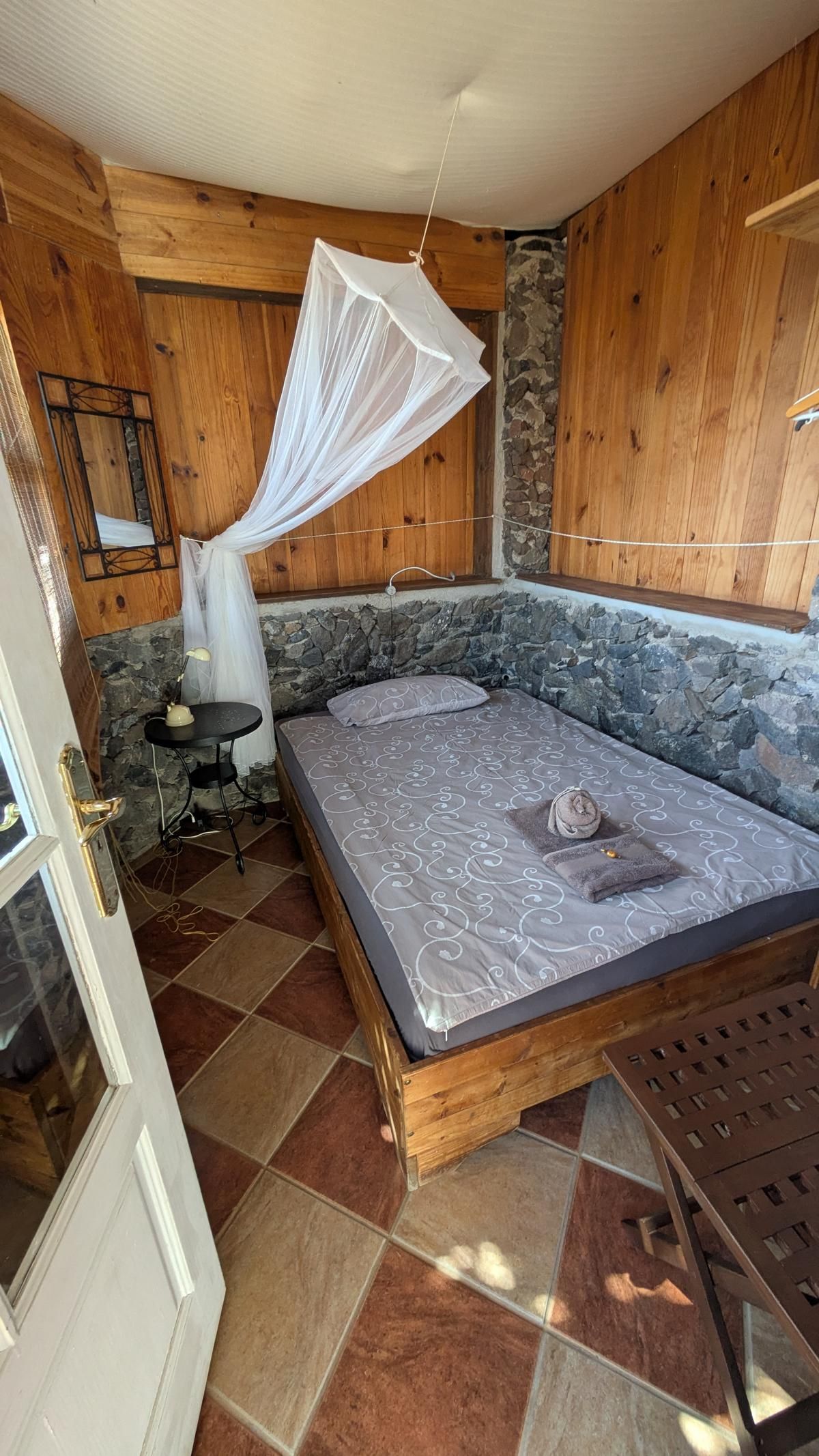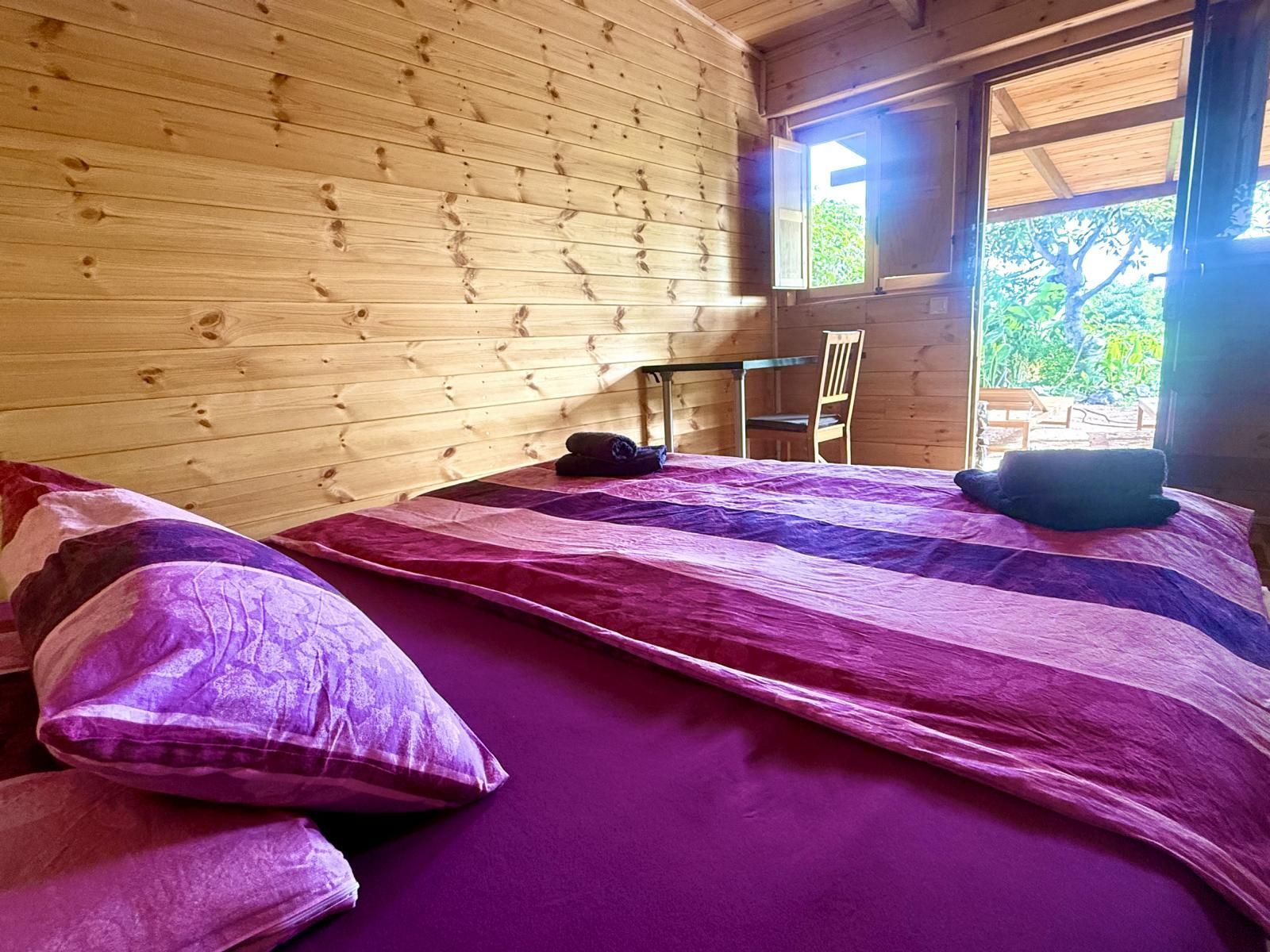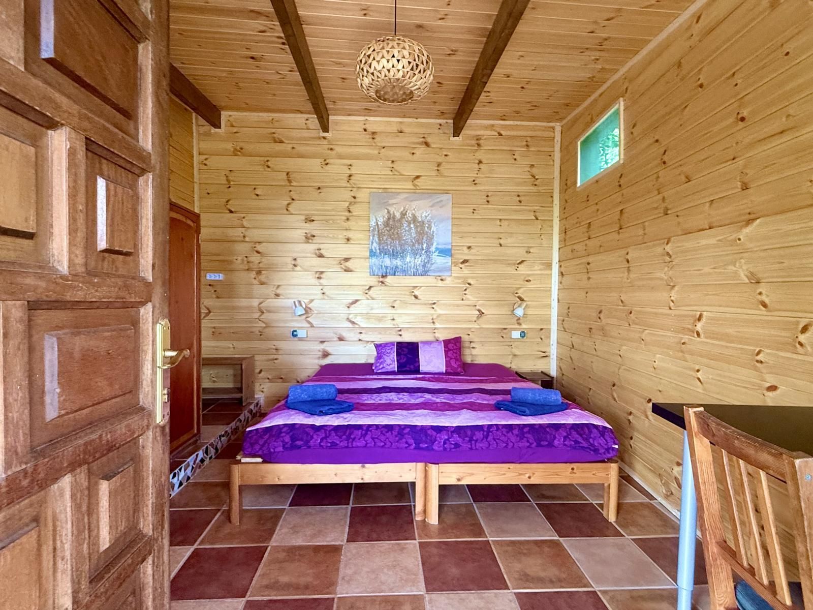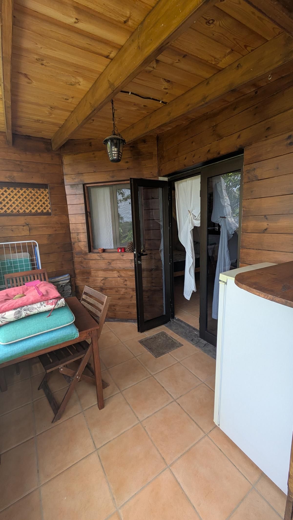 - 1 separates Schlafzimmerhüttchen aus Holz mit 2 Schlafzimmern, die durch eine Holzwand getrennt sind (deshalb hellhörig)