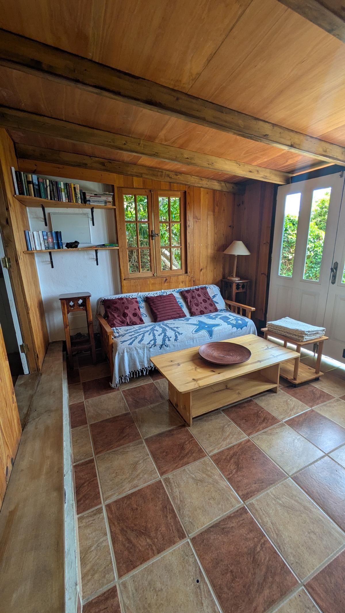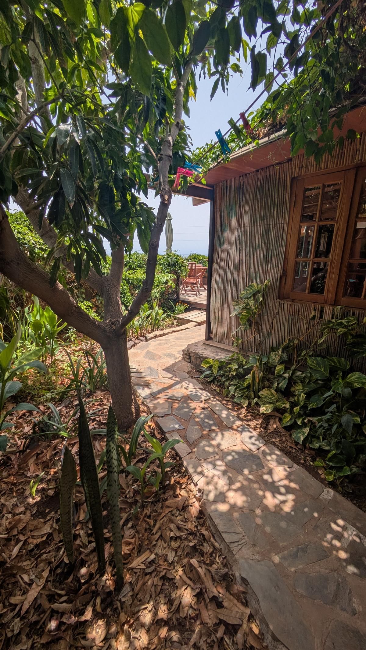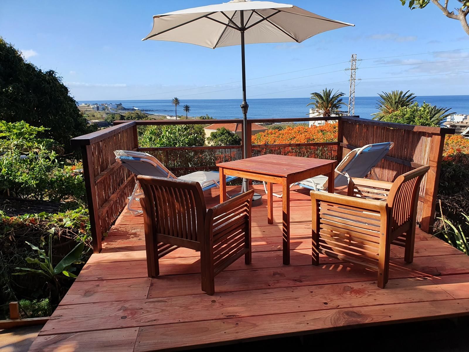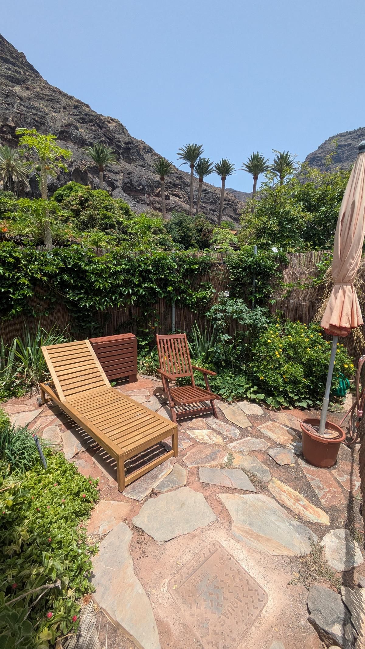 Das Estudio ist ein Einzimmerhäuschen mit einem kleinen Stückchen Garten mit Meerblick, Sonnenliege und Sitzgelegenheit.