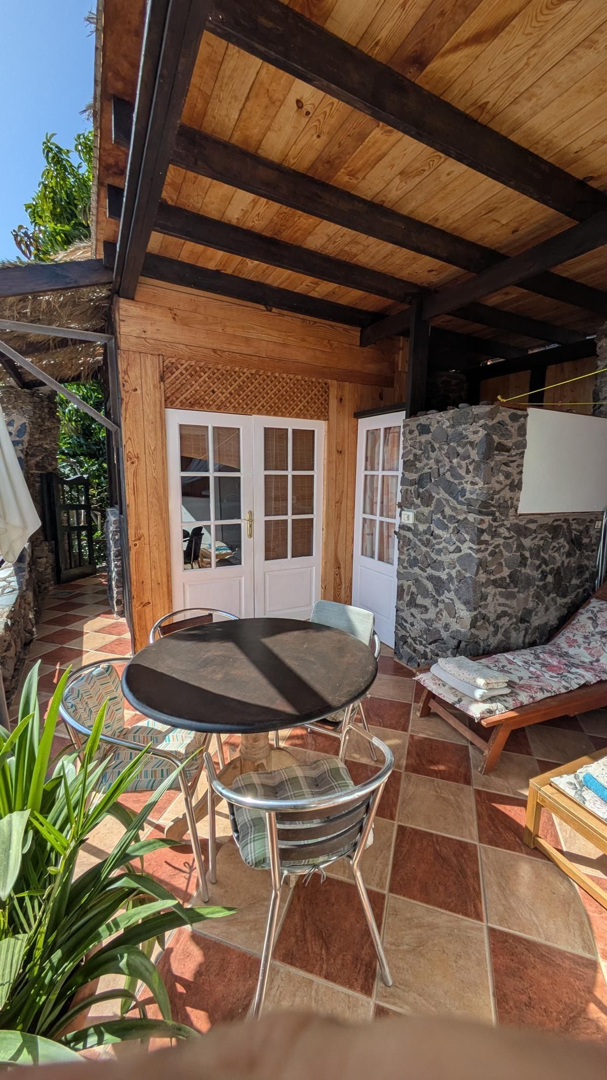 Umgeben von Bäumen. Unverbauter Meerblick. Auch geeignet für Familien da die Zubuchung von Casita als 2. Schlafzimmer möglich ist. Wie in allen Häuser ist auch das Rauchen auf der Terrasse nicht möglich!