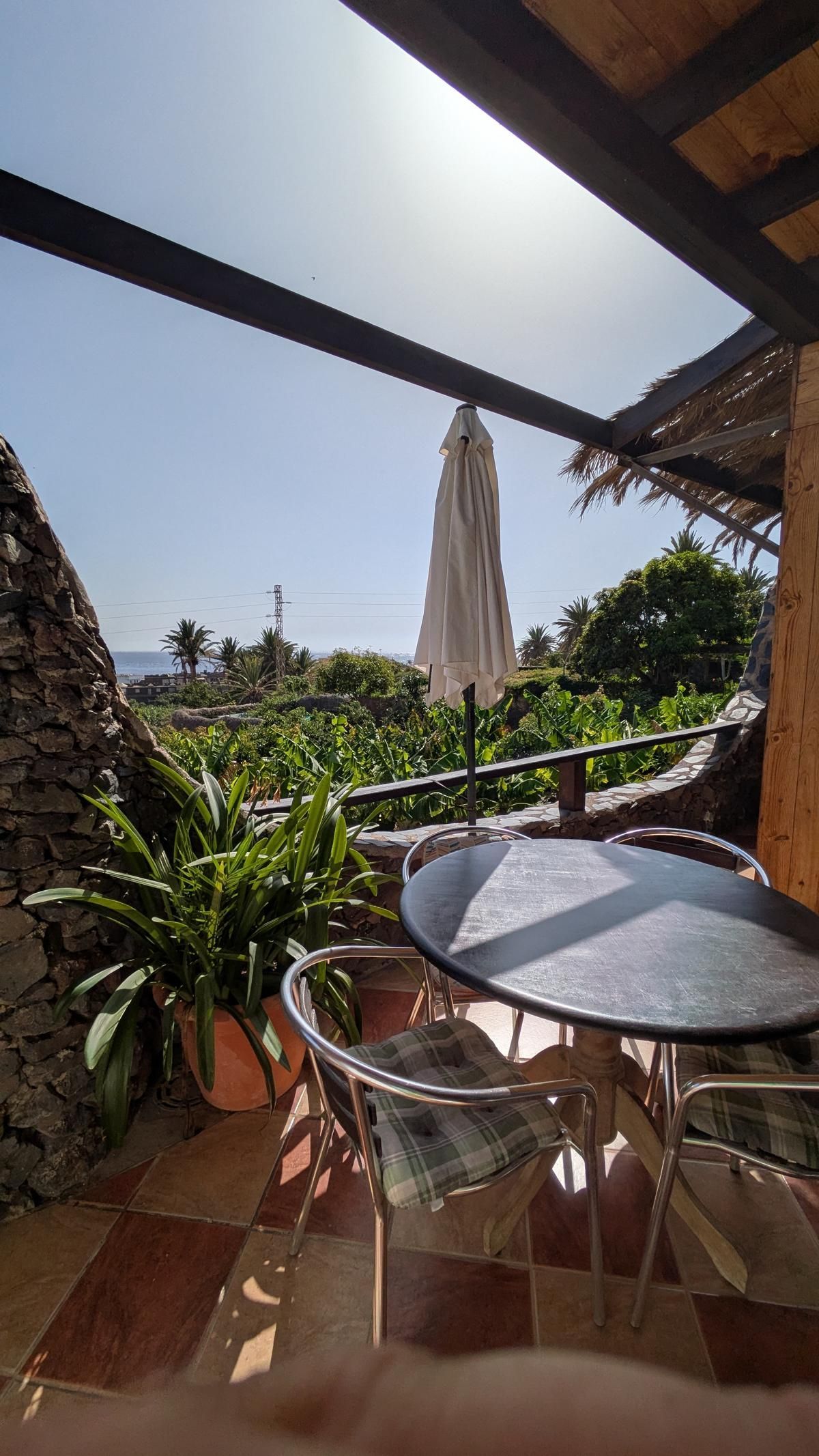 Vor der Eingangstüre, auf dem Weg nach La Playa, ist das Raucherbänkchen mit gigantischer Aussicht.