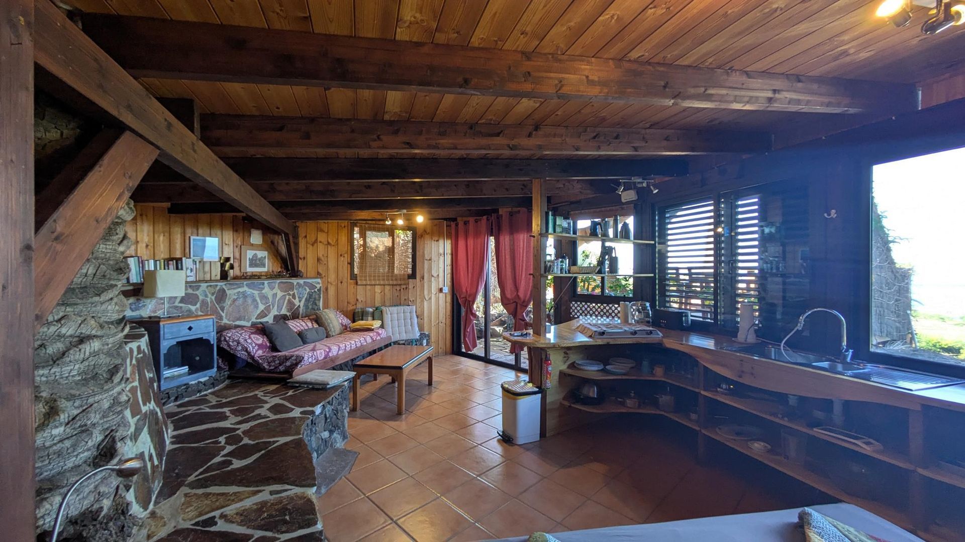 Casa Verde hat einen gigantischen Ausblick über den Gemüsegarten und das Tal von der Holzterrasse aus.